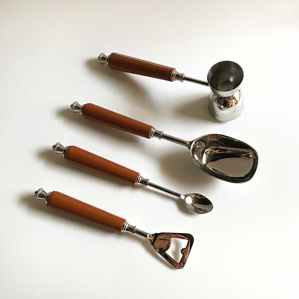 - set of 4 (spoon, ice shover, liquor measure, bottle opener)