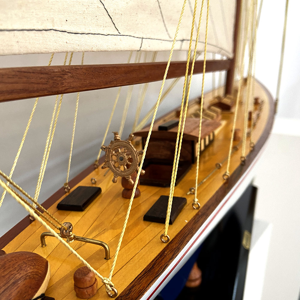 - model of wooden JK4 sailing boat used in the 1930’s America Cup