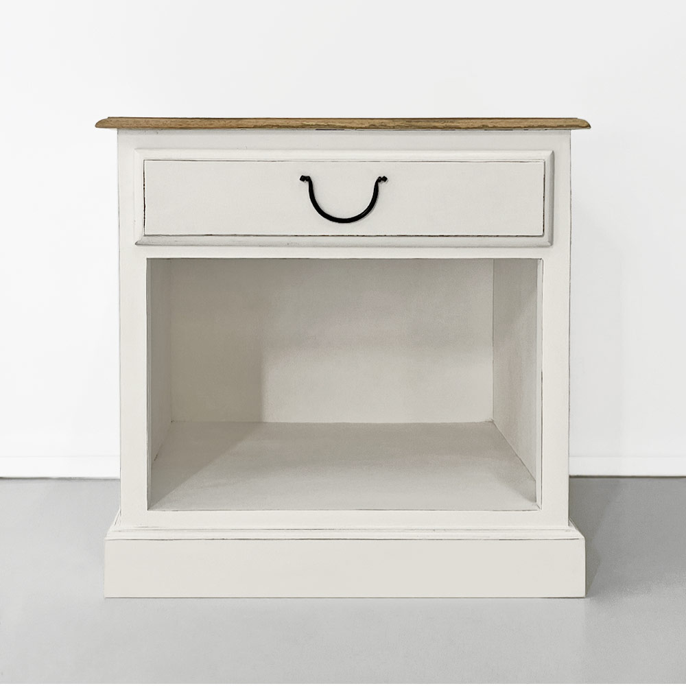 - antique white finish with natural wood top