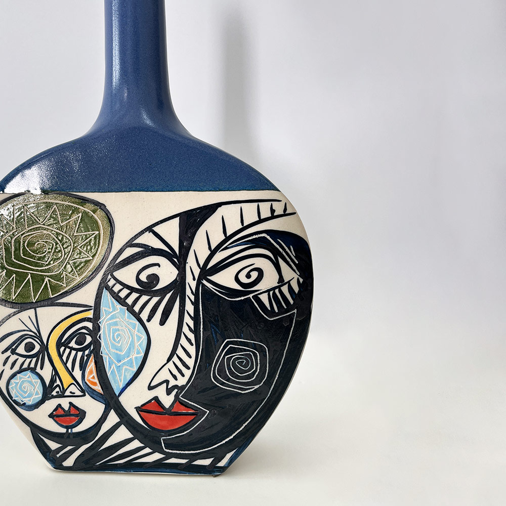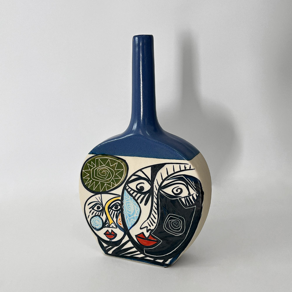 CUBIST ROUND VASE WITH TALL NECK