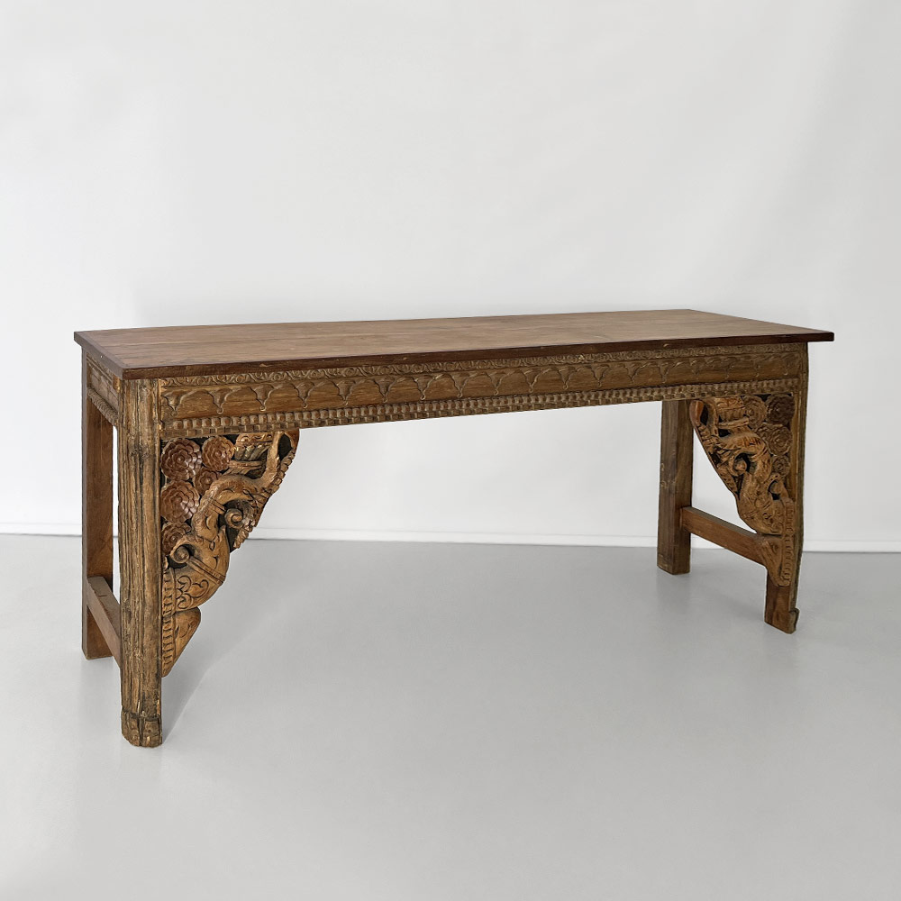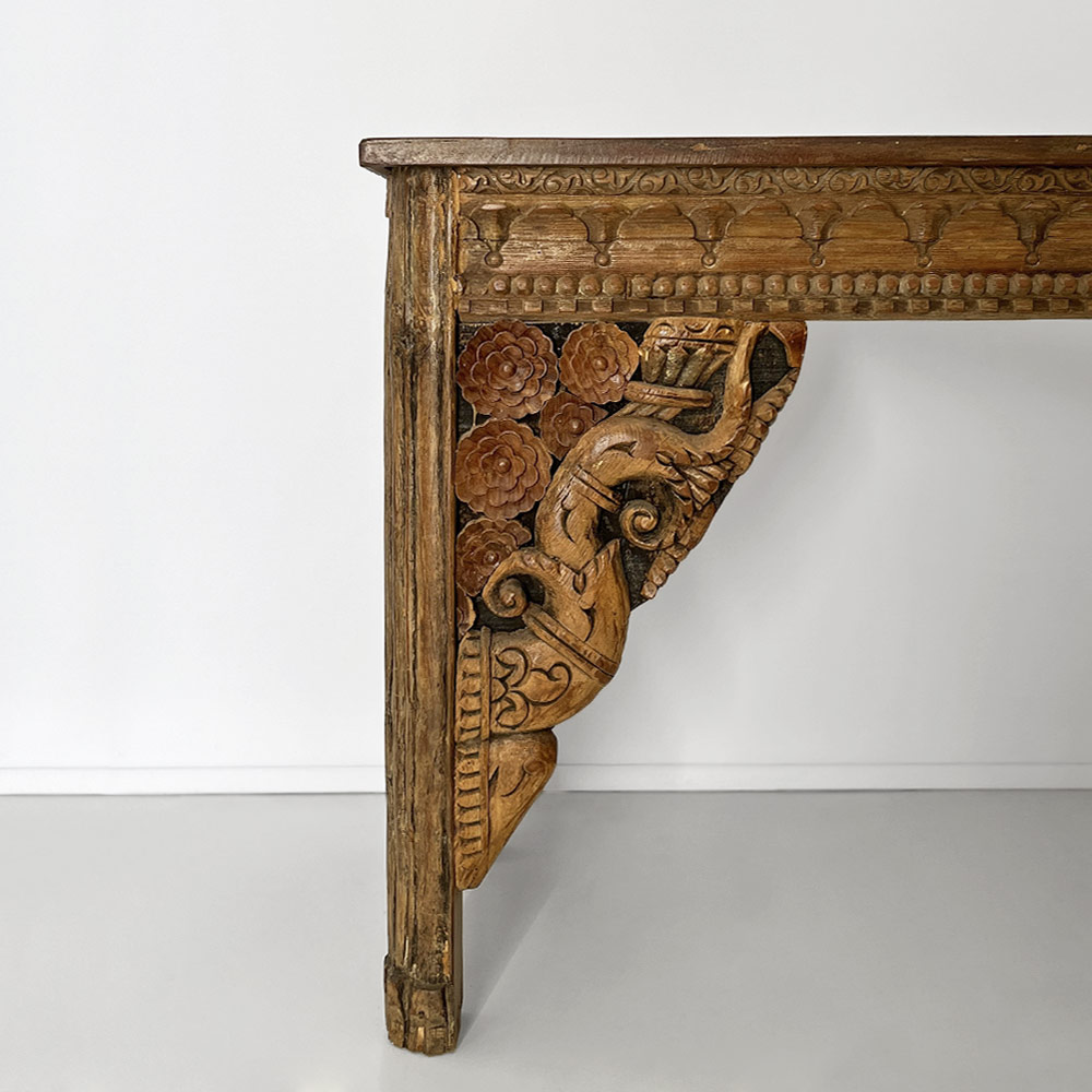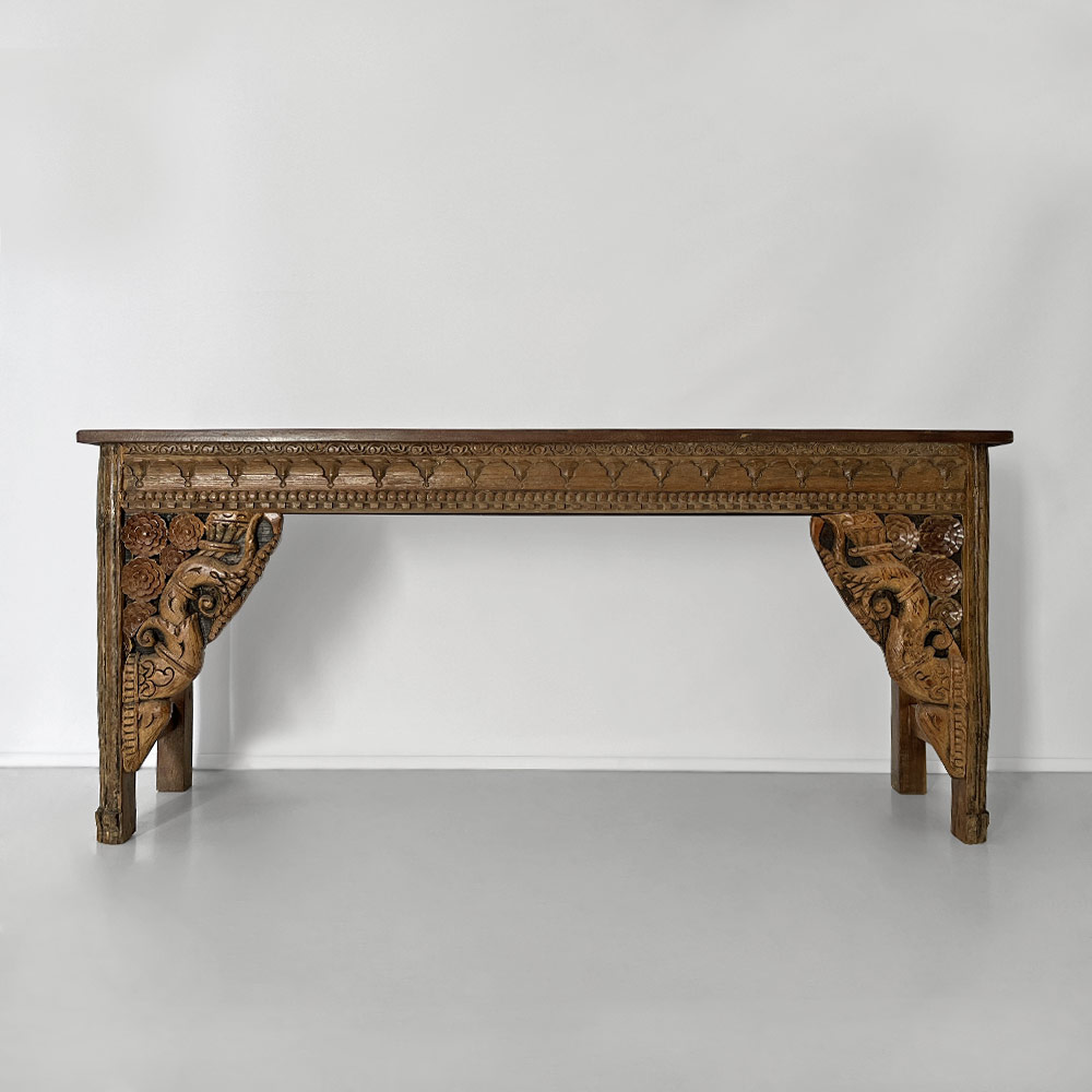 - unique consol tablemade by artisans using reclaimed architectural brackets, lintels and door frames with hand-carved elephant motifs