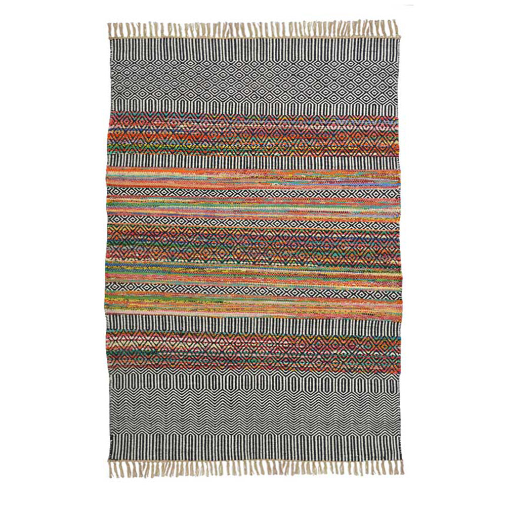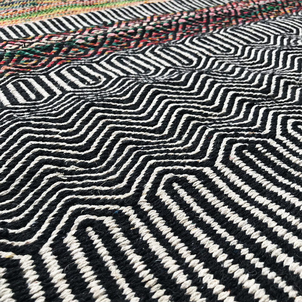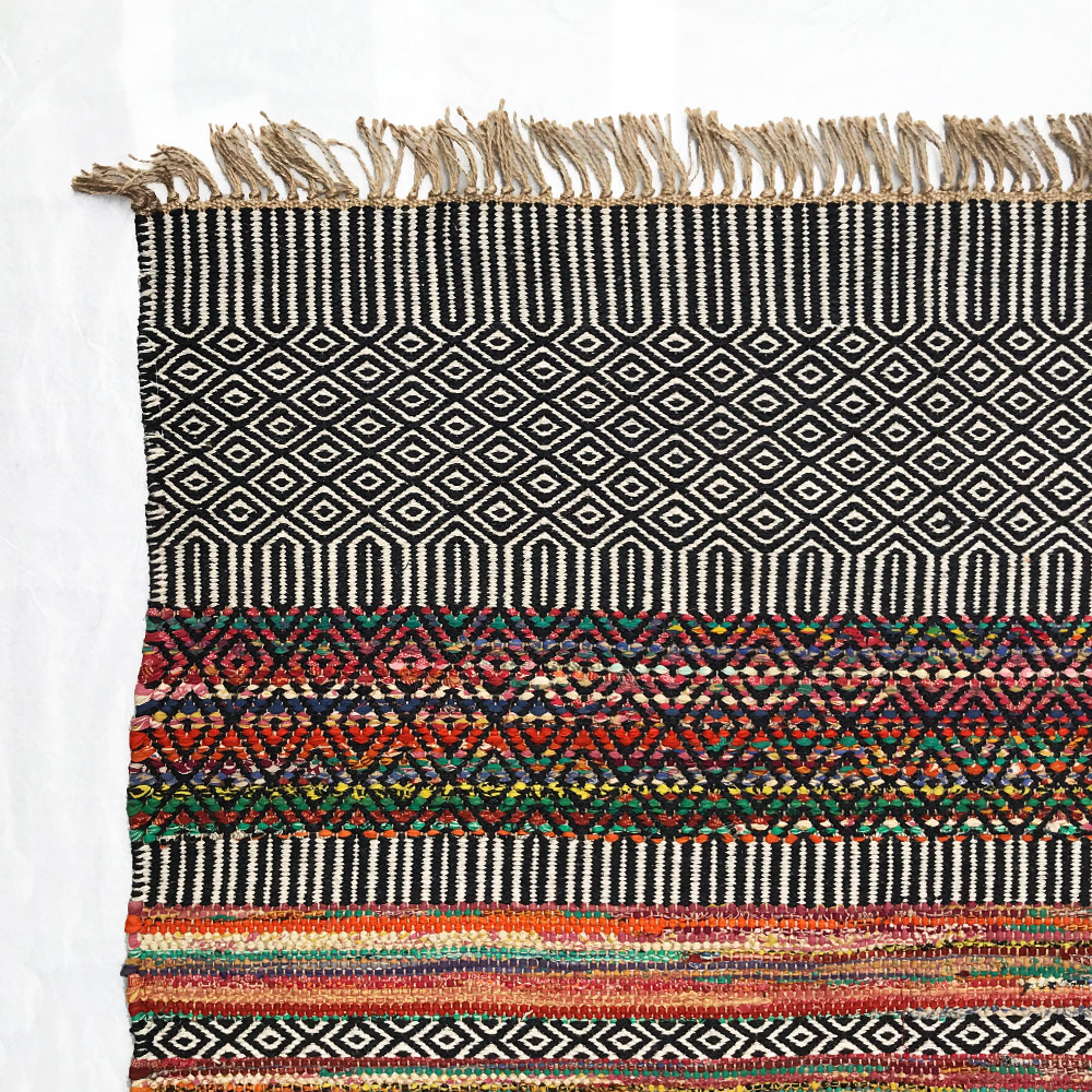 - Chindi rug made from offcuts of cotton woven into a jute thread warp