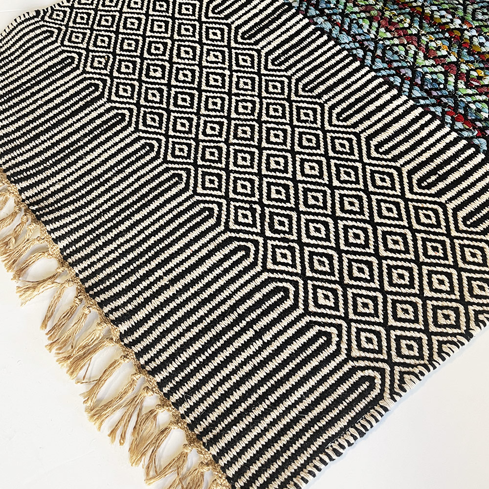 - Chindi rug made from offcuts of cotton woven into a jute thread warp