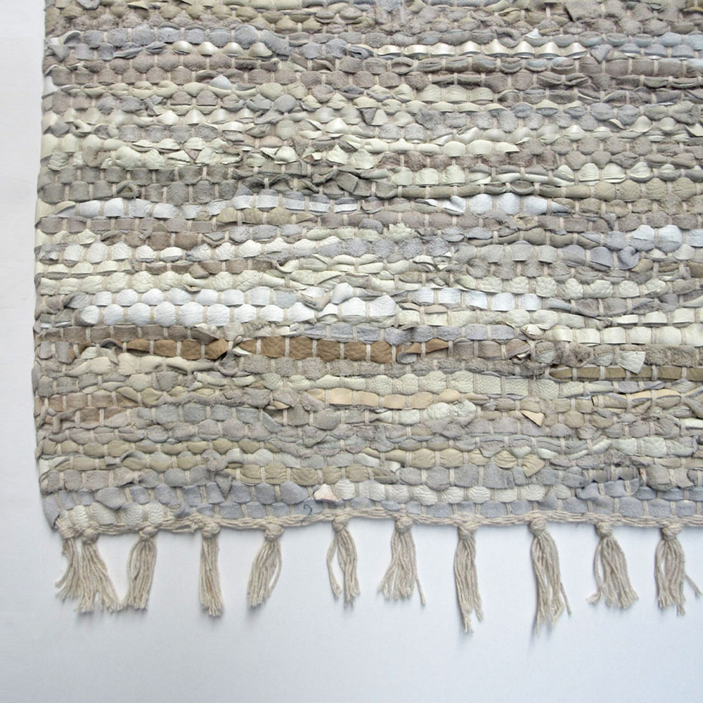 - Chindi rug made from offcuts of leather woven into a cotton thread warp