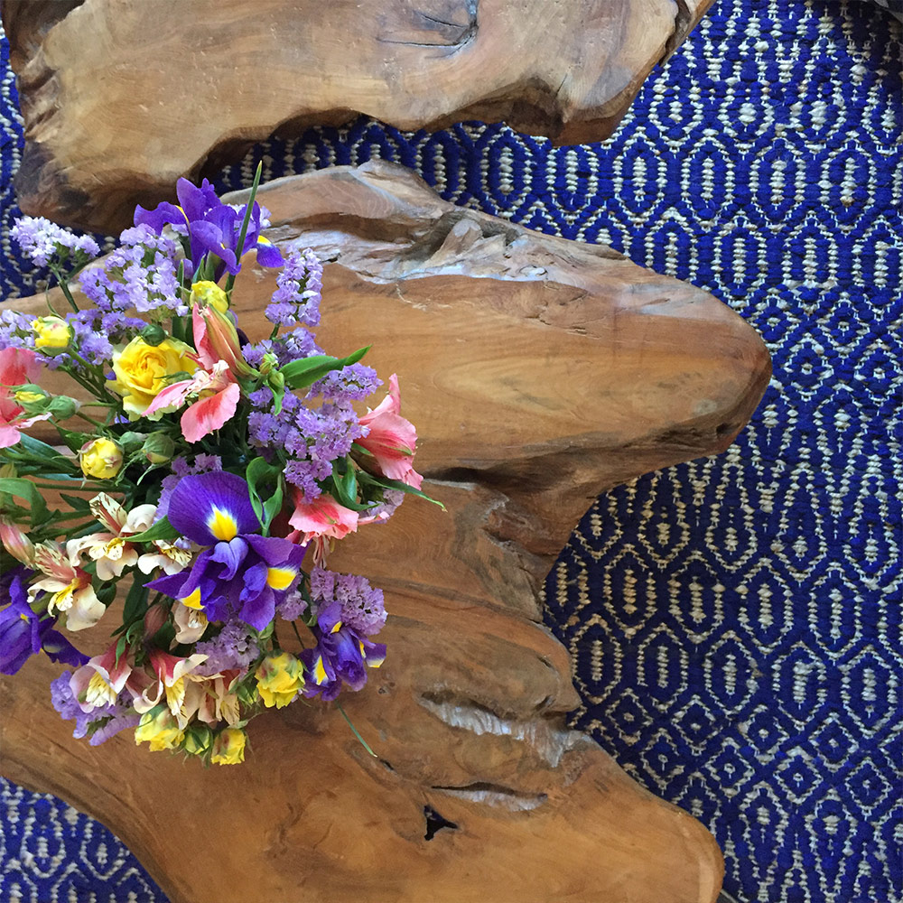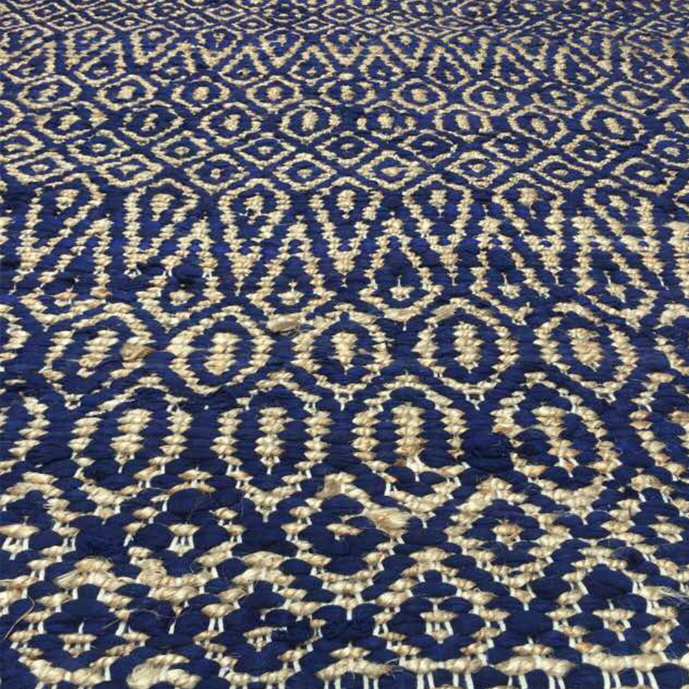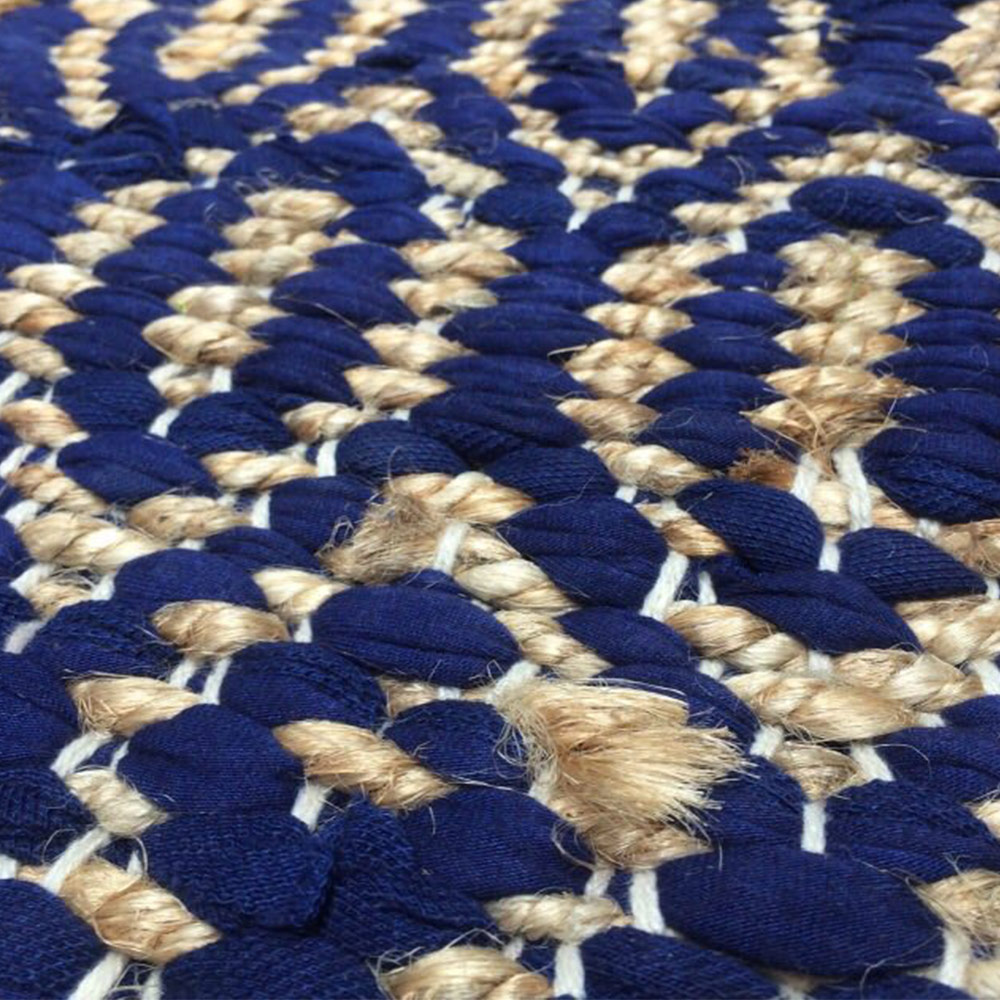 - Chindi rug made from offcuts of polyester woven into a jute thread warp