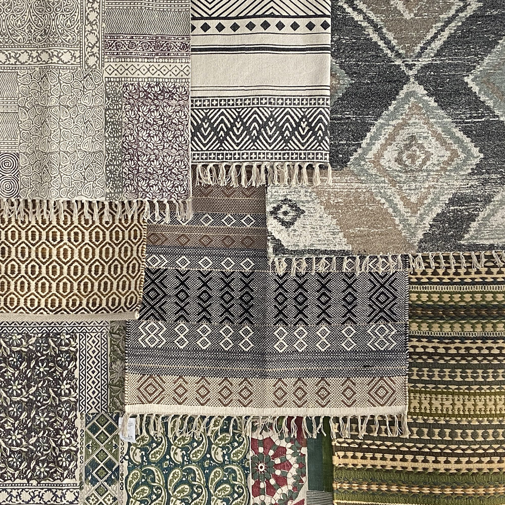 - each `dhurrie` rug is made from natural cotton that’s dyed and spun by small producers in Jaipur, India