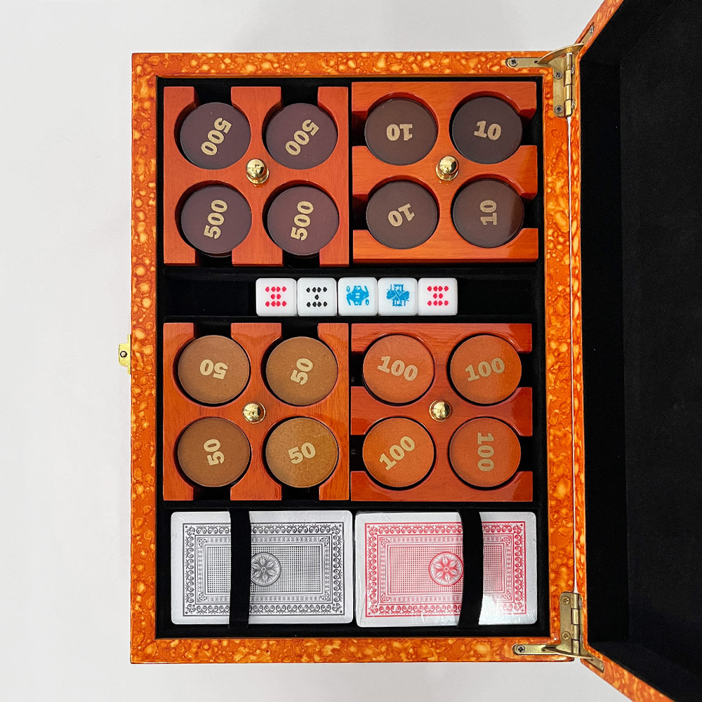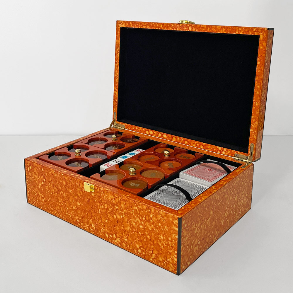 SOLA POKER SET BOX, ORANGE BURL