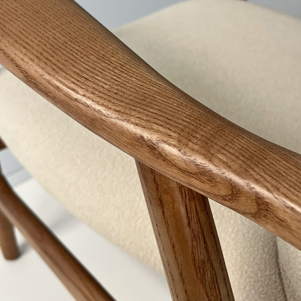 - seat and back upholstered in cream boucle fabric