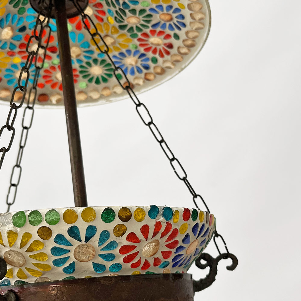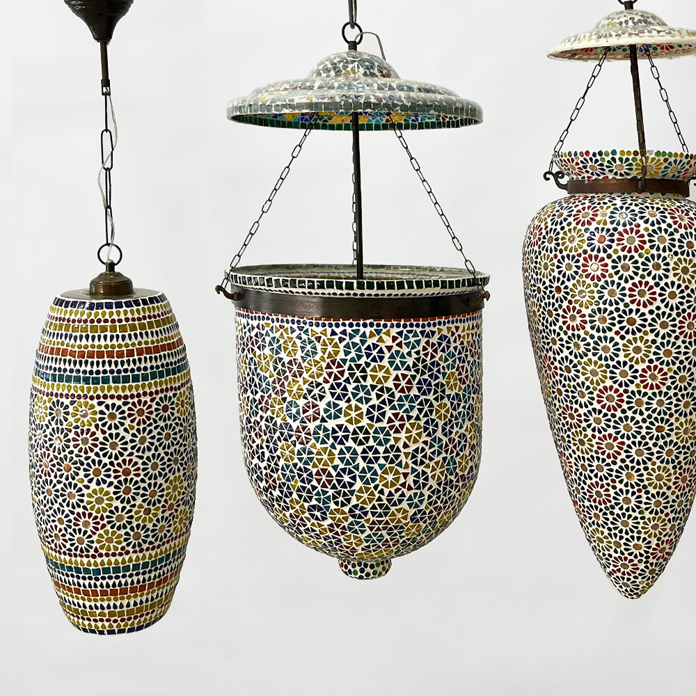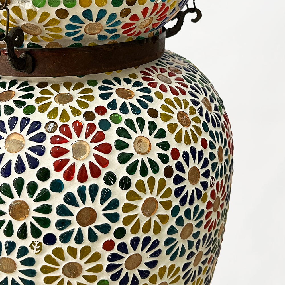 - mosaic glass lantern made from pieces of cut glass painstakingly pieced together