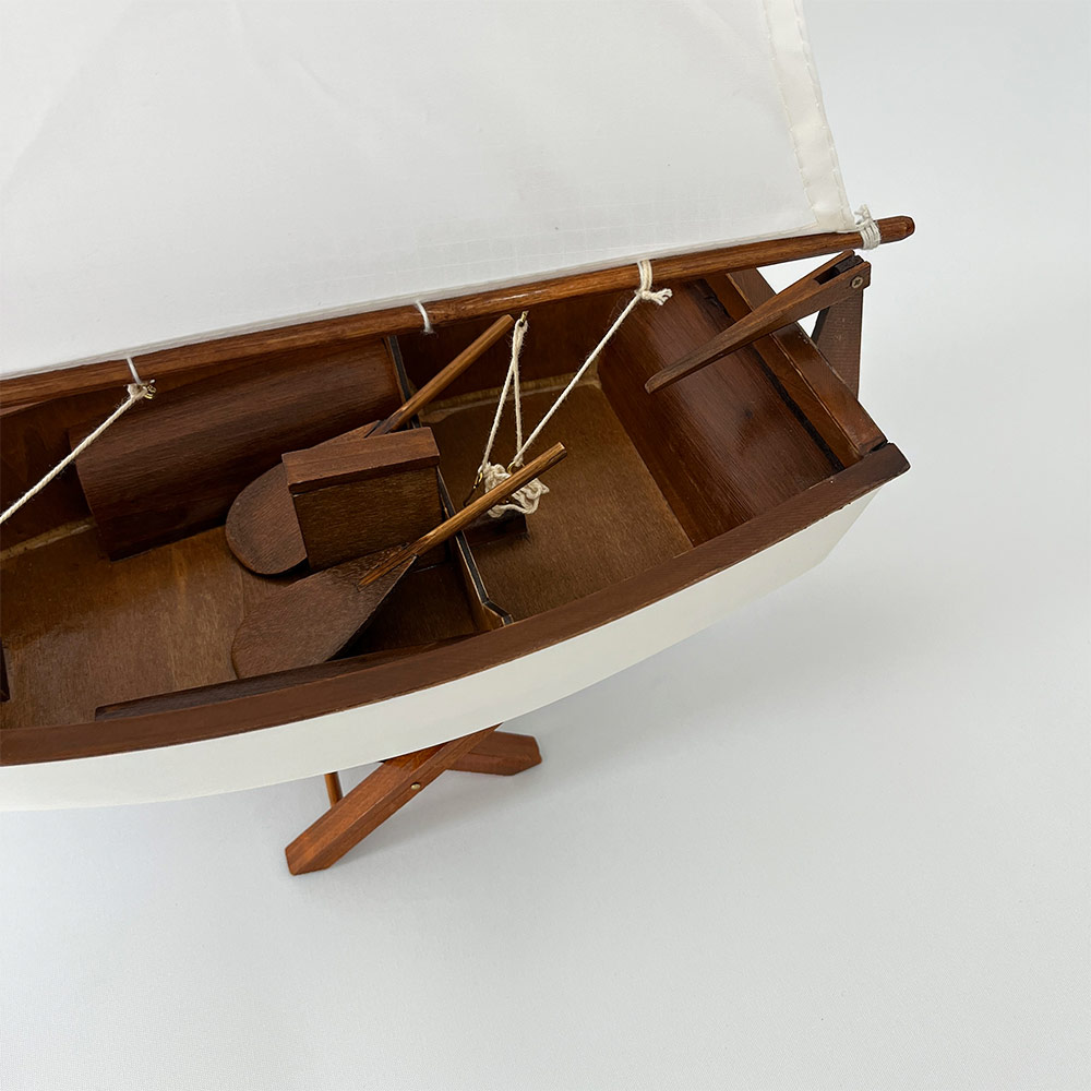 - model of wooden Optimist sailing boat