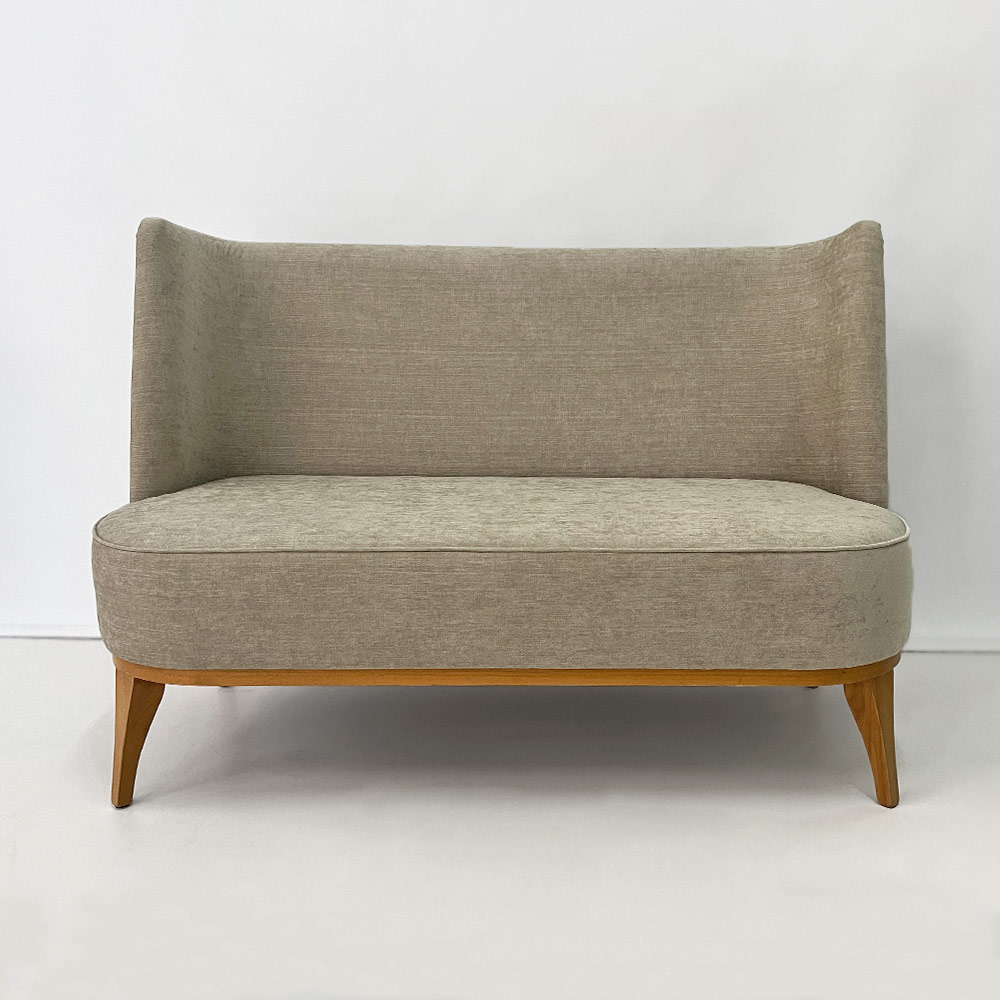 - compact two-seater loveseat with a clean, modern silhouette