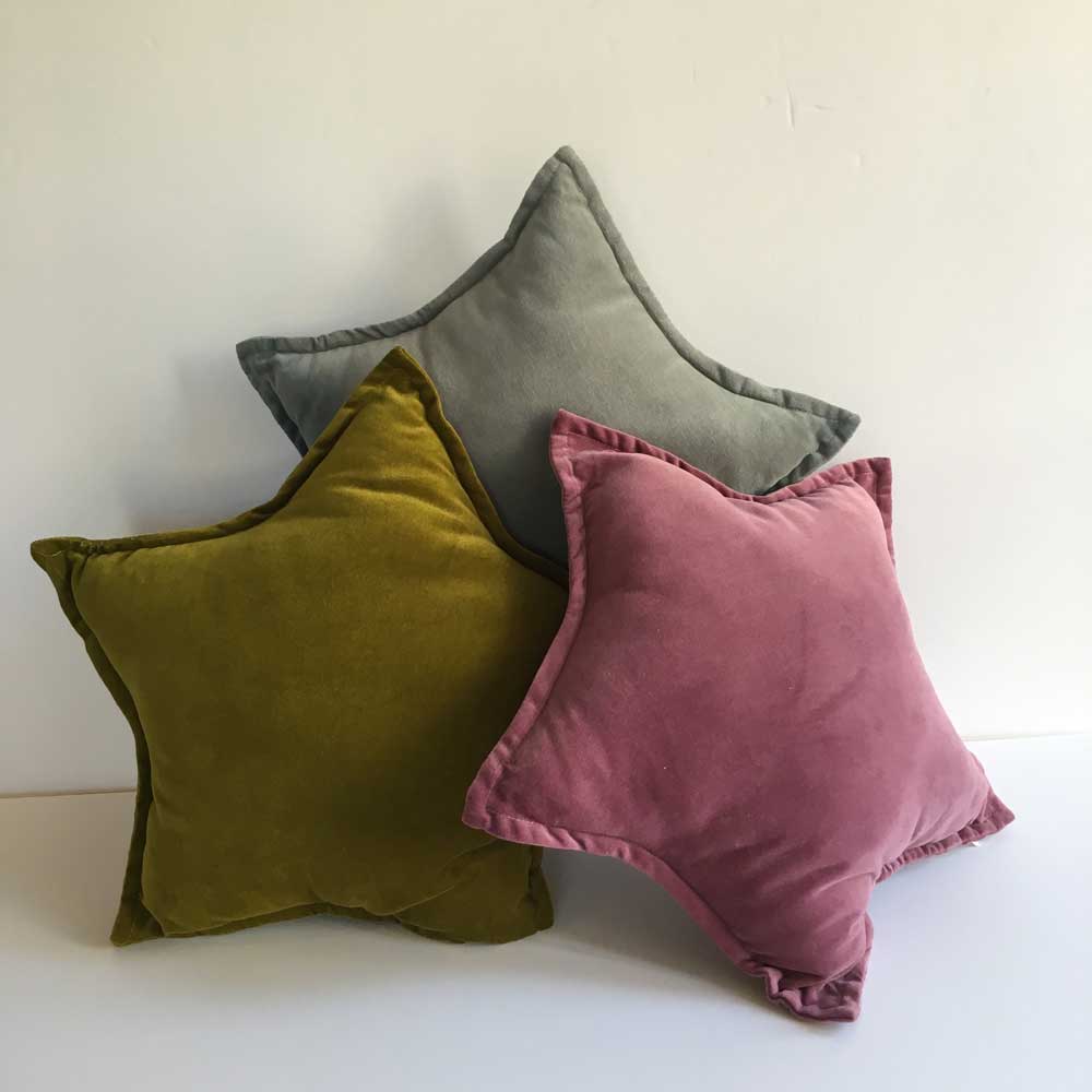 STAR VELVET CUSHION OLIVE